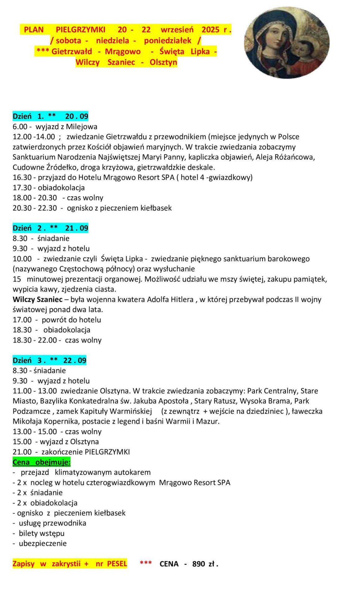 Zaproszenie na pielgrzymkę do Gietrzwałdu