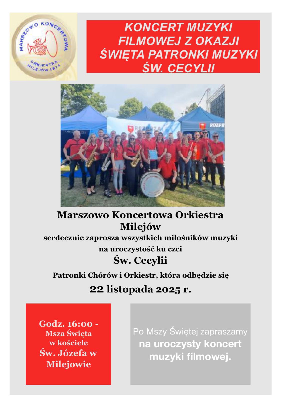 Zapraszamy na Koncert Muzyki Filmowej W imieniu organizatorów zapraszamy na doroczny koncert 22 listopada w sobotę na godz. 16.00.